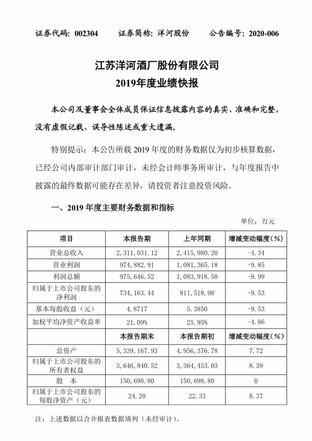 2. 洋河股份股票的業(yè)績表現(xiàn)