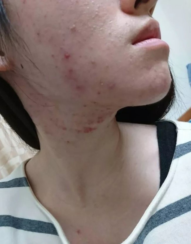 3、重度痤瘡:癥狀較為嚴重,表現(xiàn)為大量炎癥性丘疹、膿皰、結節(jié)和囊腫,這些囊腫可能深入皮膚組織,導致皮膚凹凸不平,甚至可能留下疤痕。