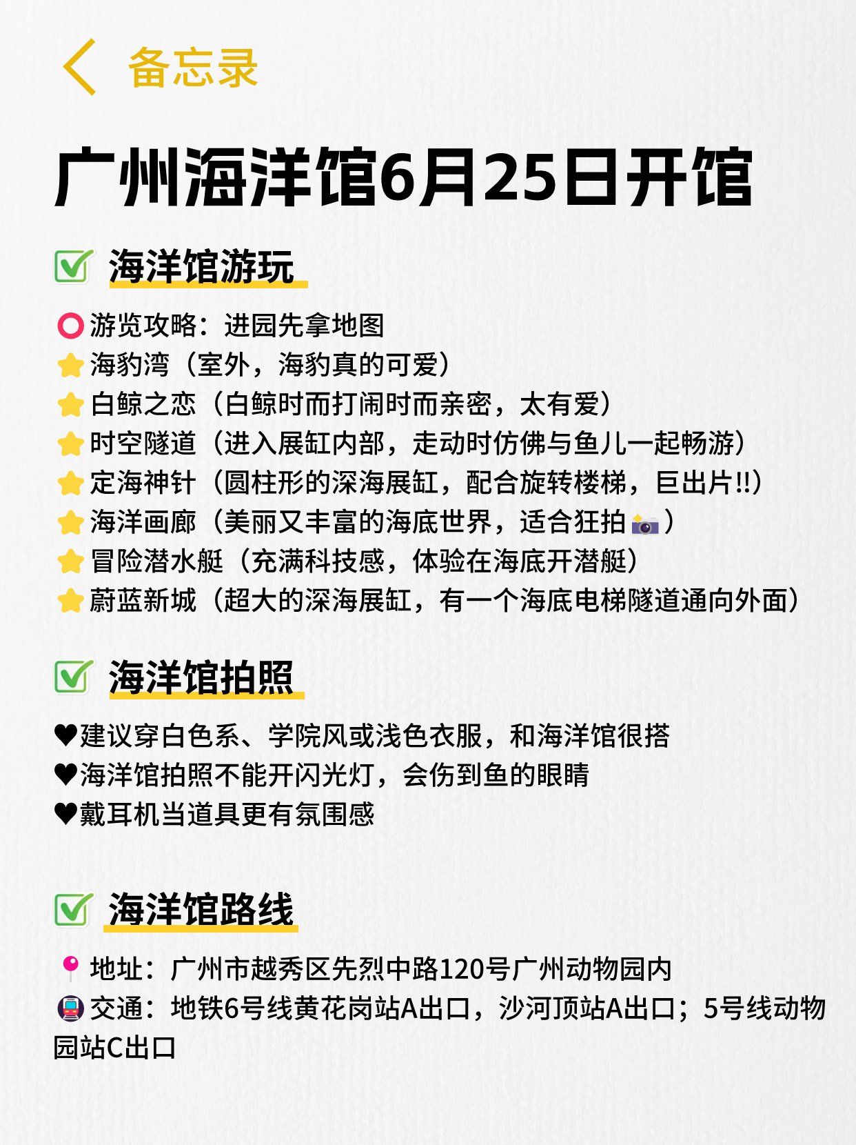 2、根據(jù)游玩時(shí)間選擇:如果您時(shí)間充裕,可以選擇較大的海洋館,如廣州長(zhǎng)隆海洋王國(guó);如果您時(shí)間較緊,可以選擇規(guī)模較小的海洋館,如廣州海洋館。